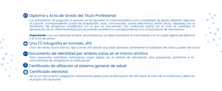 Todos los aspirantes inscritos; sin excepción deben cargar digitalmente los siguientes documentos en formato PDF o JPG, completos y legibles.