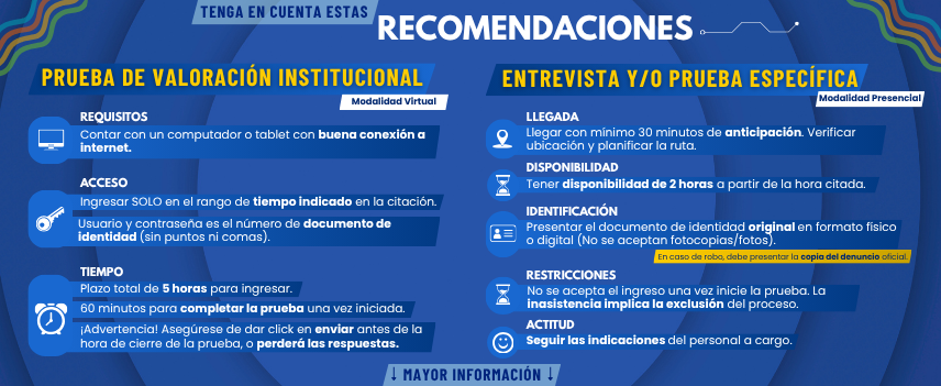 IMPORTANTE: Para los aspirantes al programa de Diseño Digital y Multimedia se solicita traer bolígrafo tinta negra, lapiz HB2, tajalapiz y borrador para presentar la Entrevista y/o Prueba Específica.